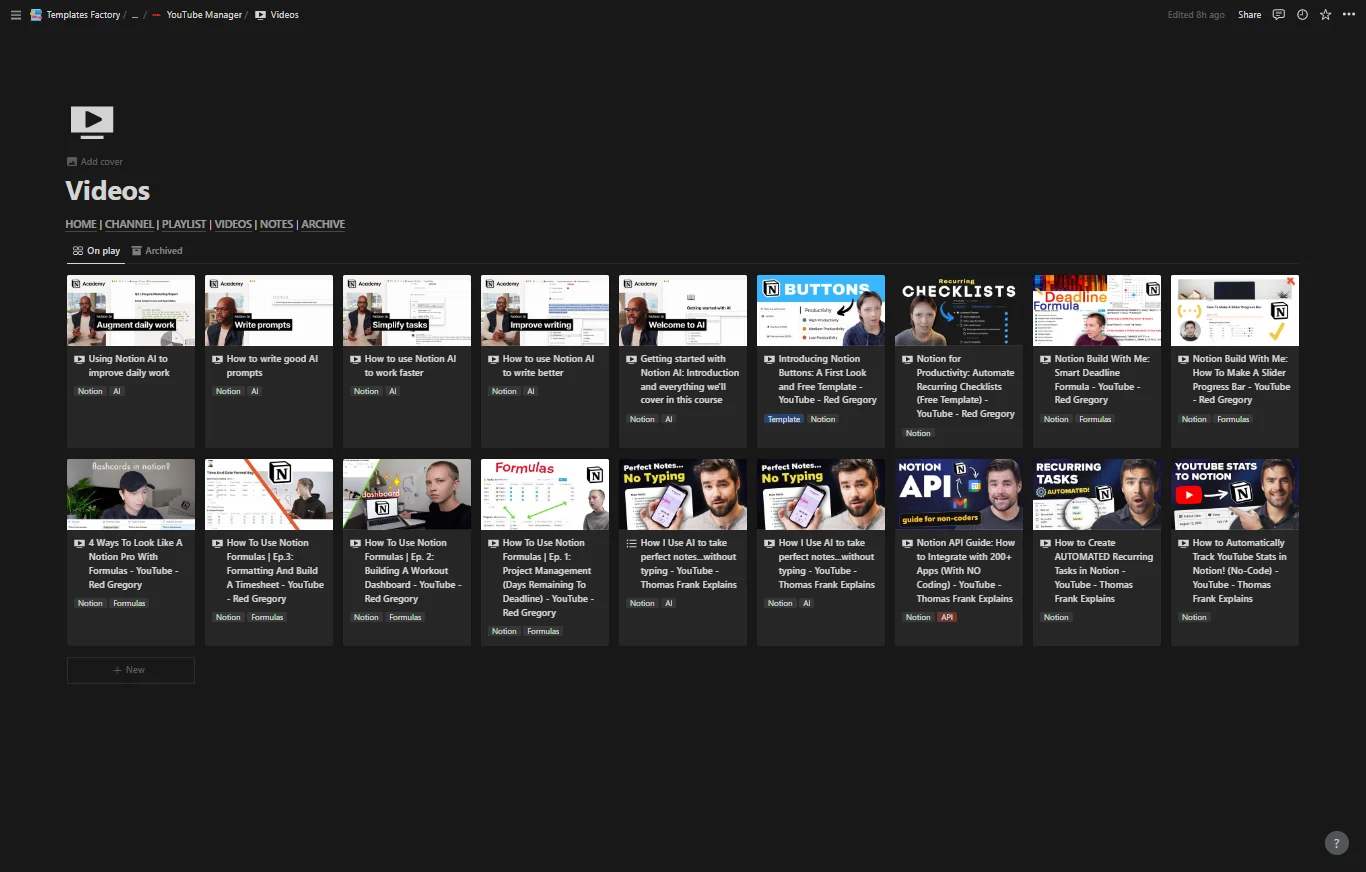 If you follow dozens of YouTube channels, take online courses, or simply want to organize your viewing experience, keeping track of everything can become overwhelming. The YouTube Manager template transforms chaos into clarity, giving you a centralized system to manage channels, track playlist progress, and capture insights from every video you watch.